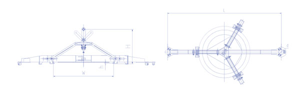 | 額定載荷 (t) | 適用范圍 W | 導(dǎo)向柱間距 (L) | 導(dǎo)向柱直徑 d | 吊具腿高 h | 吊具最大高度 H | 吊具自重荷 (t) |
