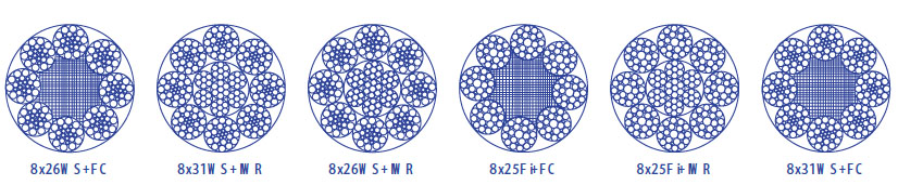 繩結(jié)構(gòu):8×25Fi+FC 8×25Fi+IWR 8×31WS+FC 8×31WS+IWR 8x26WS+FC 8x26WS+IWR